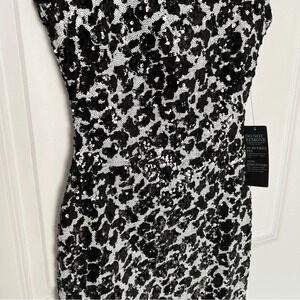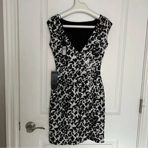 Step out in style with this elegant black and white floral dress. Perfect for any occasion, this dress offers a chic and sophisticated look.