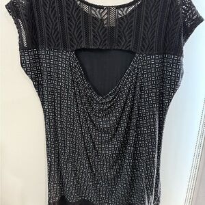 Elevate your style with this elegant black and white geometric blouse. Perfect for both casual and formal occasions, its unique design adds a touch of sophistication to any outfit.