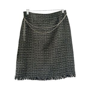 Step into elegance with this black and white tweed pencil skirt. Its timeless design is perfect for both work and social gatherings.