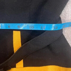 This elegant long sleeve dress features a striking black and yellow design, perfect for any occasion. The bold pattern adds a touch of sophistication to your wardrobe.