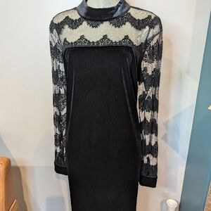Elegant Black velvet & Lace cocktail Dress size 1x by Junarose