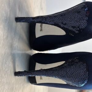 These sophisticated blue heels showcase a luxurious lace texture and a classic pointed toe design. The tall, slim heel is complemented by a platform sole, ensuring both style and comfort. Perfect for any occasion, these heels effortlessly transition from day to evening wear.