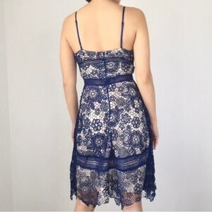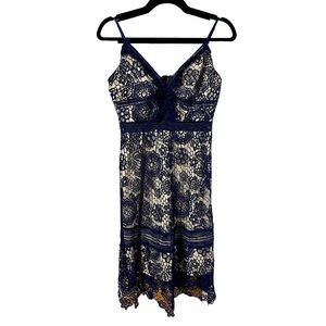 This stunning blue lace midi dress is perfect for any occasion. Its intricate lace design adds a touch of elegance and sophistication. Ideal for evening events or special occasions.