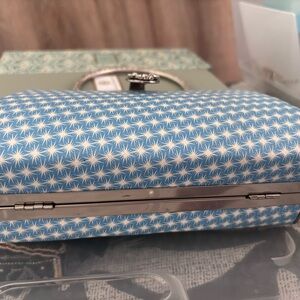 This elegant handbag features a stunning blue pattern, perfect for any occasion. The intricate design and quality craftsmanship make it a must-have accessory.