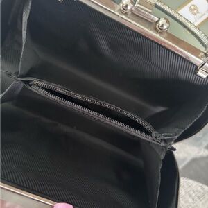 Elegant Blue Patterned Handbag with Crystal Mickey Mouse Clasp