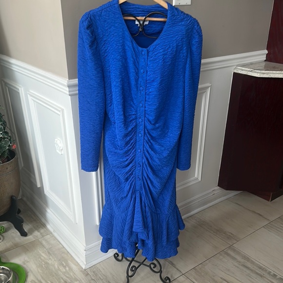 This elegant blue ruched dress is perfect for any occasion. Its vibrant color and stylish design make it a standout piece in any wardrobe.
