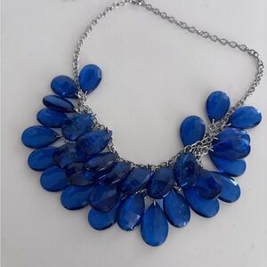 Make a bold statement with this elegant blue necklace. Perfect for adding a pop of color to any outfit.