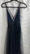 This dress features a stunning navy design with a sheer overlay. Perfect for evening events.