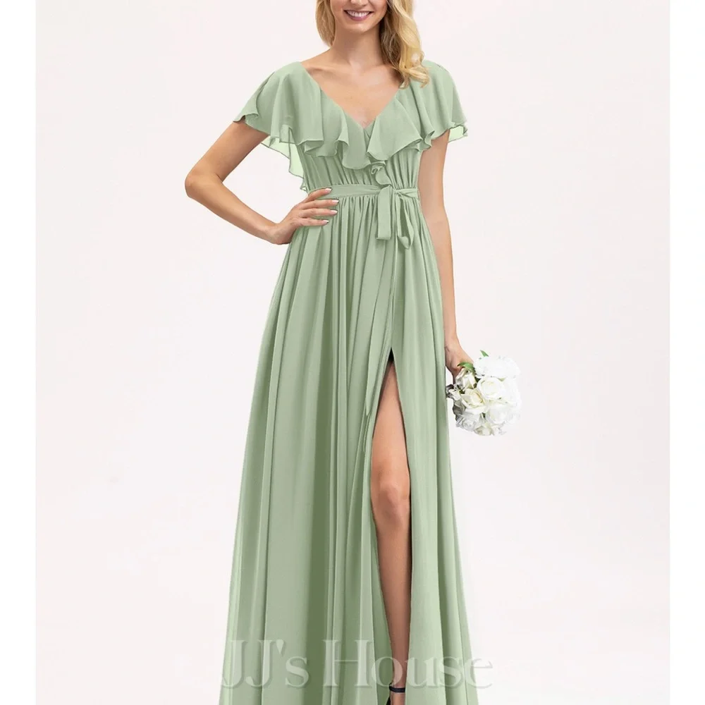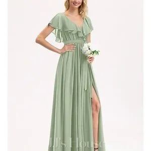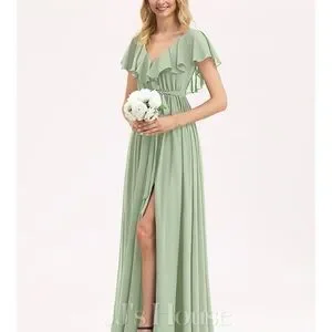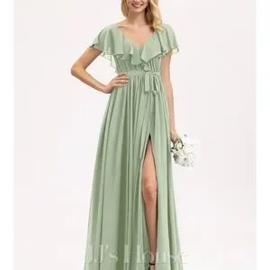 This elegant green maxi dress features a flattering V-neck and a stylish slit. New, never worn. Color : Celadon