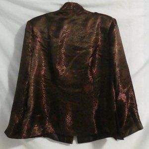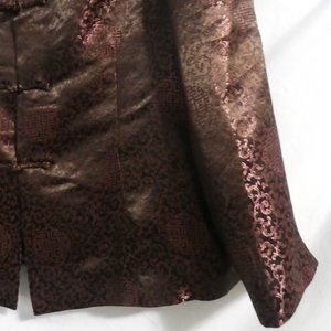 A sophisticated jacket crafted from high-quality brocade fabric, featuring rich, textured patterns.