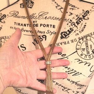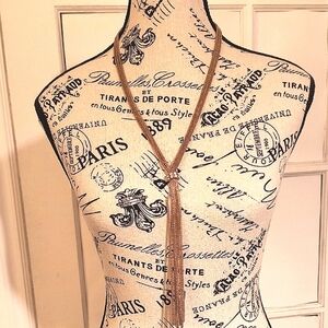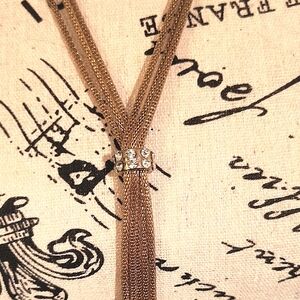 This elegant bronze and rose gold tone set with rhinestones necklace adds a touch of sophistication to any outfit.