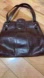 This elegant brown leather shoulder bag is perfect for any occasion. Crafted with high-quality materials, it offers both style and durability. The rich brown color adds a touch of sophistication to your outfit. Very minimal markings and distressing to the leather. Interior is clean. The one interior pocket has some white markings that seem to have come from wear or are part of the material does not affect the bag. There is one small tear on the side opening crease of the bag see pictures.