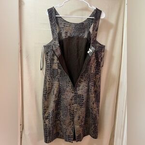 Elegant Brown Scale Patterned Women's Dress Zip Up Back, Metallic Size 16