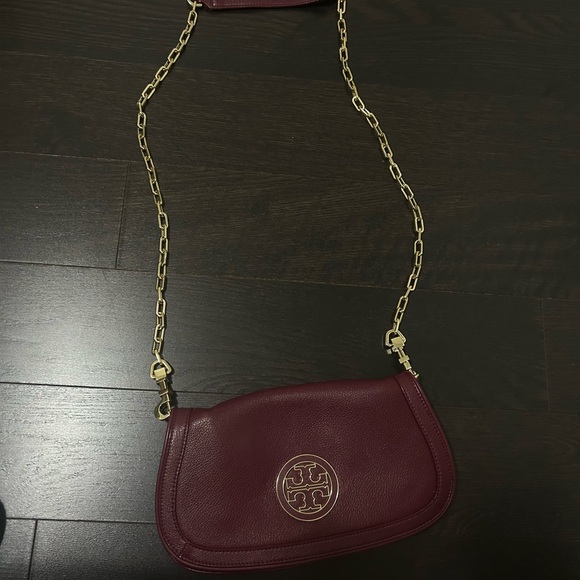 stylish burgundy leather shoulder bag features a chic design with a gold chain strap. Perfect for any occasion, it combines elegance and functionality. Beautiful gold hardware and timeless colour 🥹