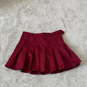 This chic burgundy skater skirt is perfect for any occasion. Its elegant design offers a flattering fit and timeless style.