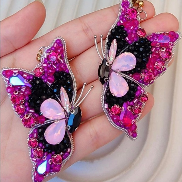 Add a touch of elegance with these stunning butterfly earrings. Featuring vibrant pink and black crystals, these earrings are perfect for any occasion.