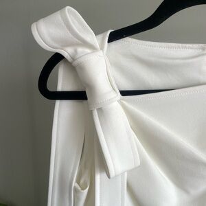 Calvin Klein Sleeveless White Sheath Dress with Shoulder Bow & Front Slit Size 6. This dress has never been worn and is in perfect condition!