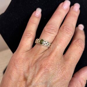This elegant Celtic sterling silver 925 women's ring features a stunning green stone set in a beautifully crafted silver band.
