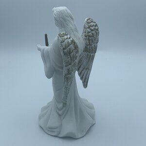 Elegant Ceramic Angel Figurine with Trumpet 8.5 inch – Gold Accents - Christmas