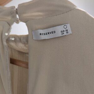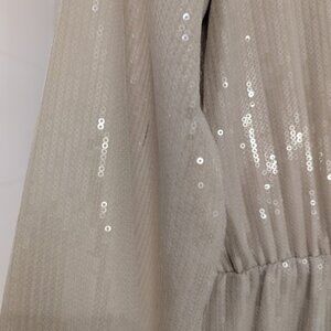 Stunning champagne sequin maxi dress from European brand RESERVED. A truly elegant, luxurious piece. Fully lined with a soft stretch knit (sleeves unlined for lightness), comfortable to wear, not scratchy. Elastic waist for a beautiful shape, no zipper — slips on easily.