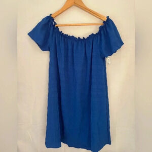 “Stay effortlessly stylish this summer with our short-sleeved blue dress, crafted from a breathable blend of polyester and elastin. This lightweight and stretchy fabric ensures all-day comfort, making it the perfect choice for sunny beach vacations or casual outings. Featuring a flattering fit and vibrant color, this dress pairs perfectly with sandals or sneakers for a relaxed yet chic look.”