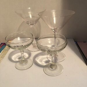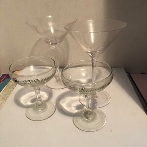 Elegant Clear Glass Cocktail Set including two - 25th anniversary glasses- used