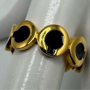 This stunning women's ring features a sleek gold band with striking black accents. Perfect for adding a touch of elegance to any outfit.