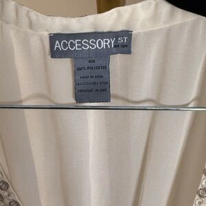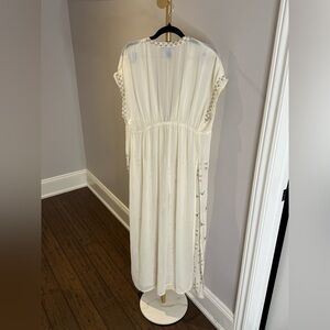 This elegant cream dress features beautiful embellishments, perfect for any special occasion. Its sophisticated design offers a flattering fit and timeless style.