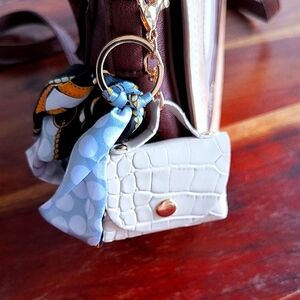 Elegant Cream Vegan Leather Mini Bag Keys Holder with Scarf Accent. New