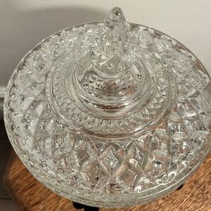 This large elegant crystal glass candy dish adds a touch of sophistication to any room. Its clear design beautifully reflects light, making it a stunning centerpiece. Perfect for storing candies or decorative items.