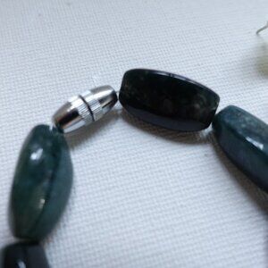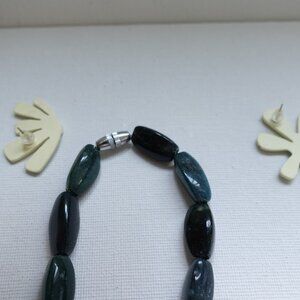 Exquisite jewelry set features polished dark green gemstone with unique, natural variations that give it a sophisticated and earthy look. Perfect for both casual and formal occasions.