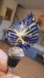Add a touch of elegance to your wine bottle with this stunning blue and gold glass art piece 13.5 cm long, pre owned, some wear