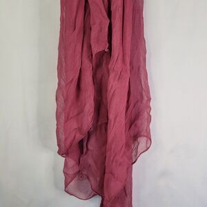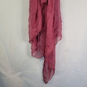 Add a touch of elegance to your outfit with this beautiful romantic semi-sheer chiffon dusty-rose pink vintage scarf. Perfect for wrapping around your neck and tucking under a jacket or sweater.
