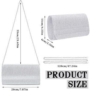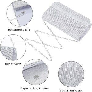 🆕Elegant Evening Clutch Purse for Women Silver Satin with Chain Strap for Party