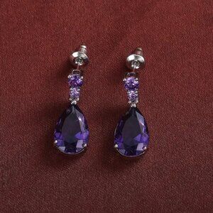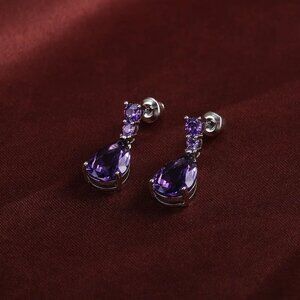 Whether you're dressing up for a wedding, an evening out, or simply want to add a touch of glamour to your everyday attire, these earrings are the perfect accessory. The vibrant purple hues of the amethyst stones make a striking statement, while the classic teardrop shape adds a touch of grace and femininity.