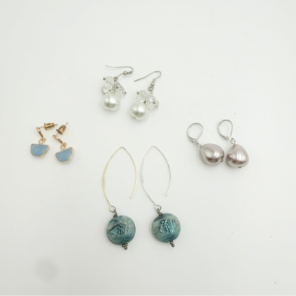 Elegant Faux Pearl & Crystal Earrings – Lot of 4 Pairs, Unique Drop Styles