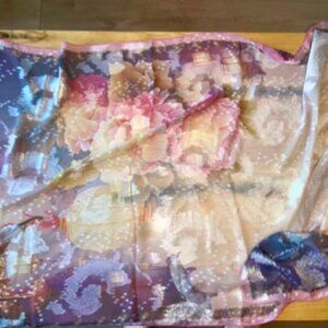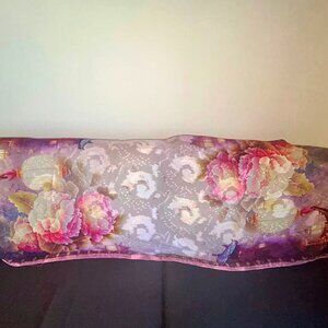 Elegant Floral Silk Scarf – Pink & Purple Peony Pattern