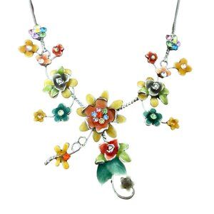 Elegant Flower Necklace with Colored Gems, Ajustable 15 to 18 inches