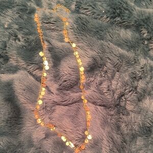 This elegant gold disc necklace adds a touch of sophistication to any outfit.