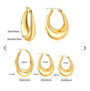 Discover timeless elegance with this stunning set of gold hoop earrings. Perfect for any occasion, these earrings add a touch of sophistication to your look.