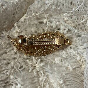 Elegant Gold Leaf Bridal Hair Barrette – Crystals & Pearls