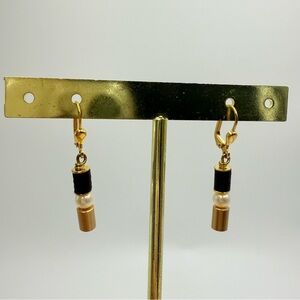 Elegant Gold Plated Faux Pearl Drop Leverback Earrings Signed AD