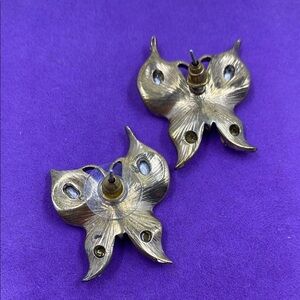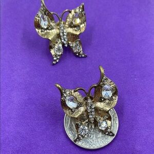 These stunning gold butterfly earrings are adorned with sparkling stones, perfect for adding a touch of elegance to any outfit.
