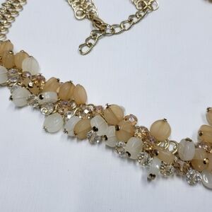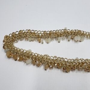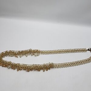 Elegant Gold Tone Chain Beaded Belt Cream Tan Clear Beads