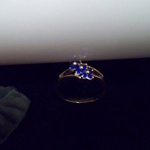 Info from original seller “This is a very elegant 9K YELLOW GOLD Filled ring with three FLOWER Shaped Simulated Sapphire Cubic Zirconia. ***Has 9K stamp. Layered is also known as gold filled. This makes the layer thicker and thus produces a more long-lasting piece compared to gold plated. Durability wise, gold filled jewelry is more durable to scratches and day to day wear and tear.