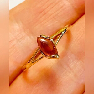 This elegant women's ring features a stunning garnet gemstone set in a sleek gold band. Perfect for adding a touch of sophistication to any outfit.