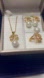 This exquisite jewelry set features a stunning combination of gold and pearl, perfect for adding a touch of elegance to any outfit. The set includes a necklace, earrings, and a ring, all designed with intricate details and a luxurious finish.