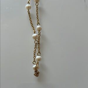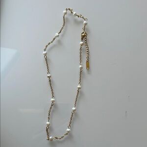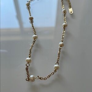 This elegant necklace features a delicate gold chain adorned with lustrous pearls. Perfect for adding a touch of sophistication to any outfit.