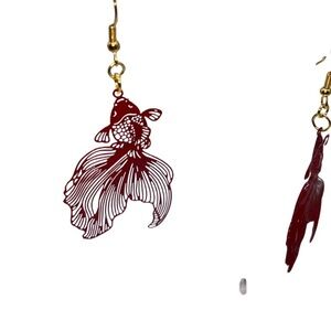 Add a touch of elegance with these stunning gold and red fish earrings. Perfect for any occasion.