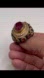 This exquisite ring features a stunning red gemstone and antique finish. Sterling silver 29g wt. Rare find and would make a great addition to any jewelry collection